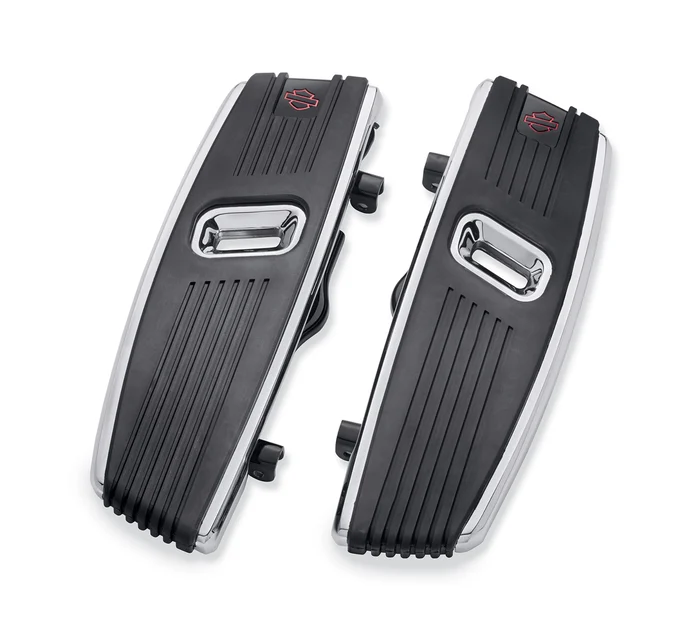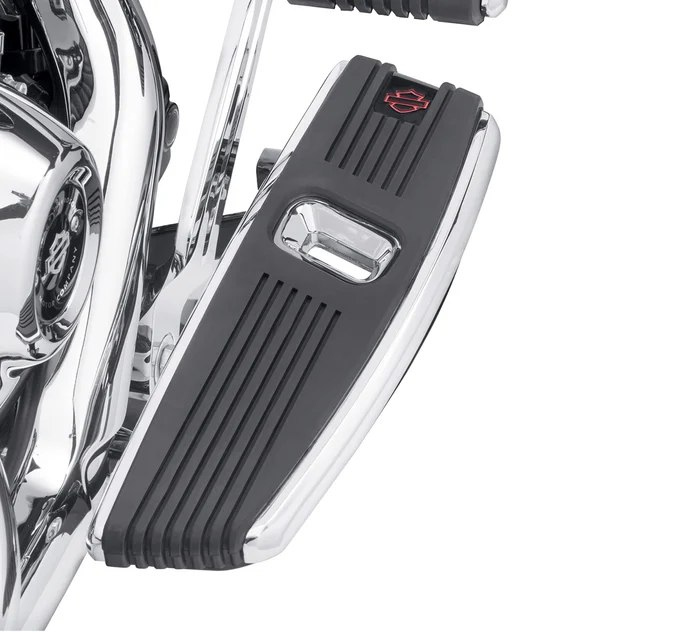 Upgrade your ride with sleek style and solid control. The Kahuna Rider Footboards combine a brilliant chrome finish with high-traction black rubber inserts for premium comfort and grip. Finished with Harley’s signature red Bar & Shield logo, these footboards are the perfect match for riders who demand performance and custom style.